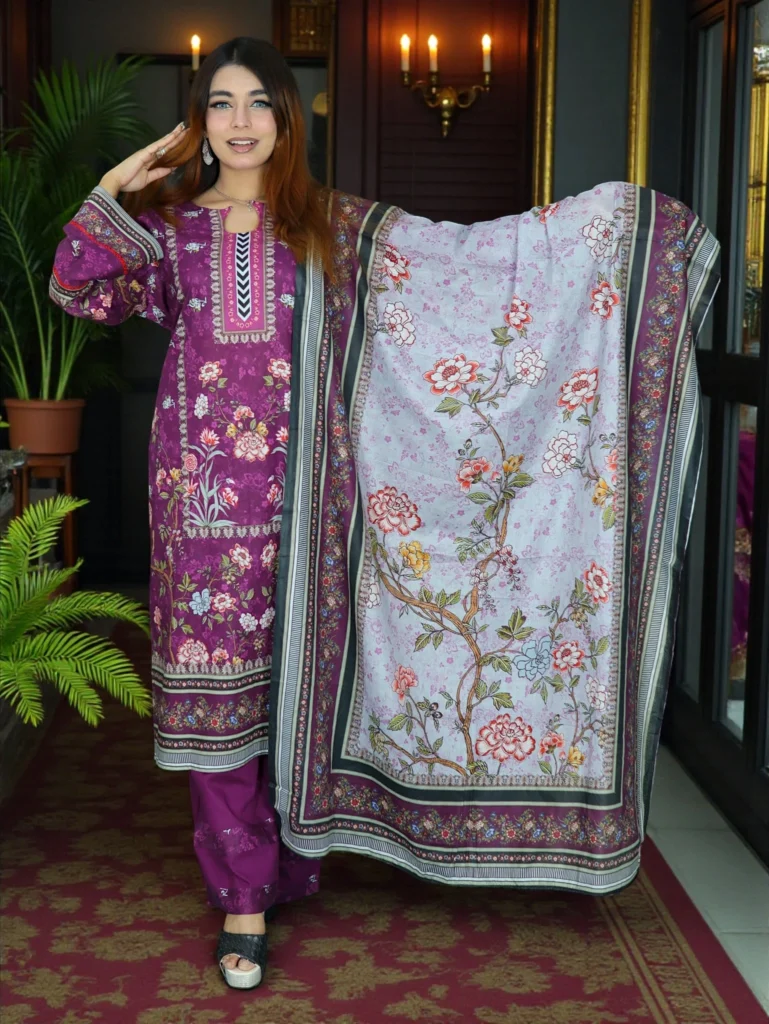 PAKISTANI INSPIRED MALHAR LAWN CODE 209 JAM COLOUR PRINK